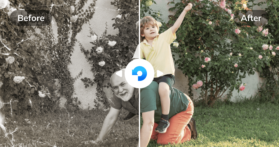 AI-powered repair of scratches, fading, and damage with image colorizer and facial detail recovery