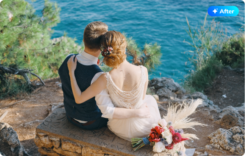 Recapture your special day’s true hues—from ivory lace to vibrant bouquets, reimagine timeless love in full color.